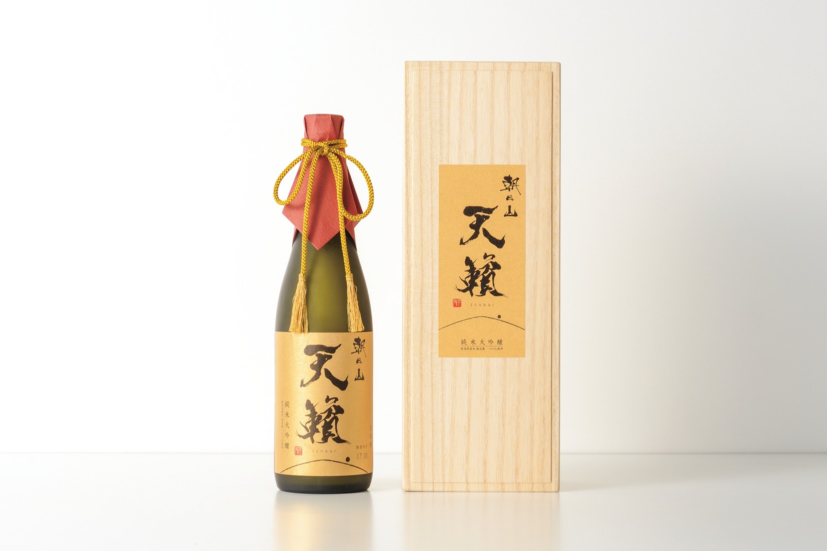 こちらはシリーズ最高峰の日本酒「朝日山 天籟 越淡麗 純米大吟醸」のラベルデザイン・印刷の制作事例です。表ラベルと桐箱ラベルのデザイン制作に加え、印刷までトータルでサポートいたしました。